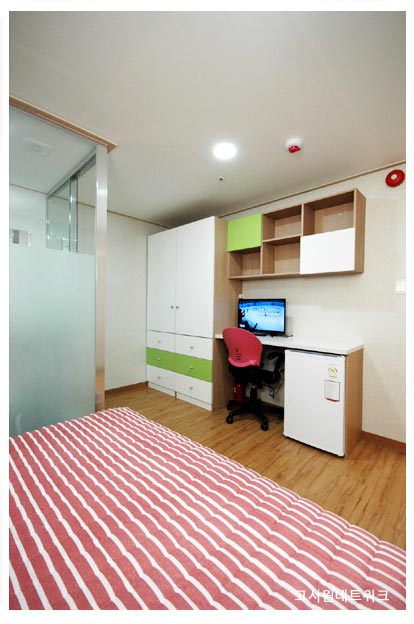 - 각방 LCD TV모니털, 냉장고, 침대, 옷장, 수납장, 책상/의자